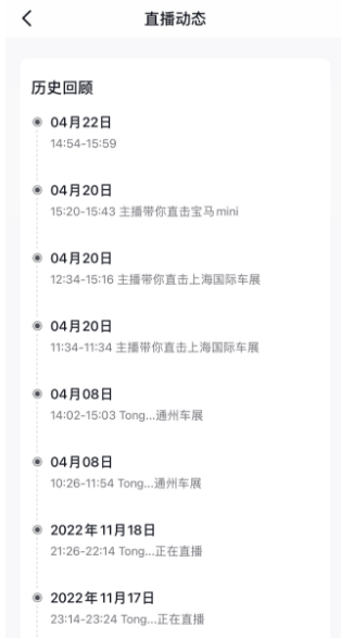 红星新闻记者注意到,“Tongtong”近一年的直播记录显示,其中7天有直播记录,7天中包括4月8日通州车展直播和4月20日的上海国际车展直播。