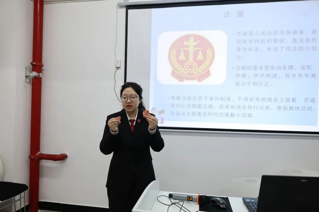 体验课上,民庭干警尚光裕向大家讲解了法院文化及庭审礼仪,播撒下同学们心底法律文化的种子。