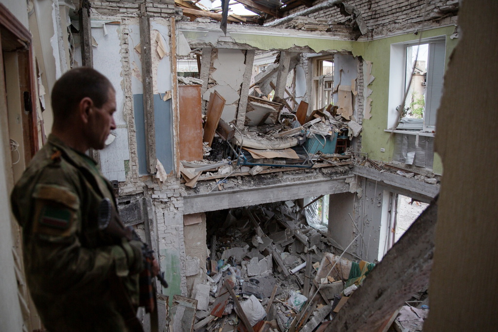 当地时间2022年6月23日,北顿涅茨克,俄乌冲突持续,建筑房屋受损严重。俄罗斯国防部发言人伊戈尔·科纳申科夫6月24日在简报会上表示,俄罗斯正在加快进度控制北顿涅茨克和利西昌斯克,已在乌东部顿巴斯地区包围了近2000名乌克兰士兵。