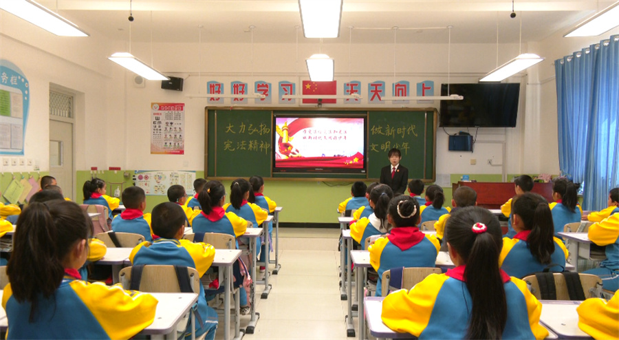 4月14日,在和硕县第一小学,各班级以主题班会、手抄报评比、课前讲法、观看视频等多种形式进行宪法、法律相关内容宣传,进一步加强学生对宪法、法律的理解,激发学生遵纪守法的意识,营造了良好的知法、懂法、守法、用法的校园法治环境。