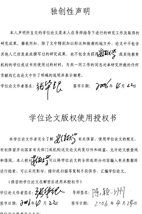 《独创性声明》后还附有张华银的亲笔签名,签字日期为2006年4月22日。