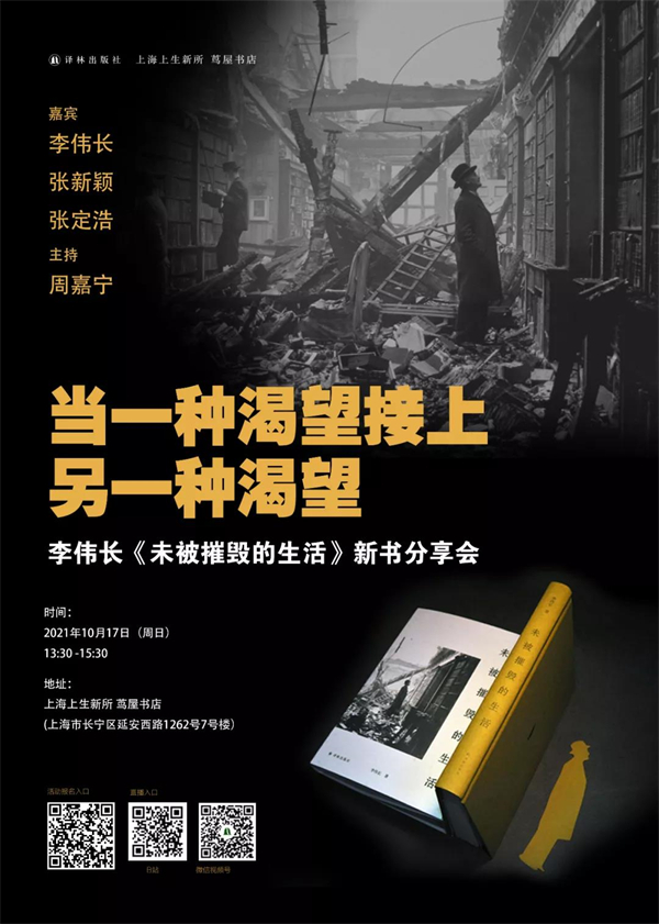 上海|当一种渴望接上另一种渴望——李伟长《未被摧毁的生活》新书分享会
