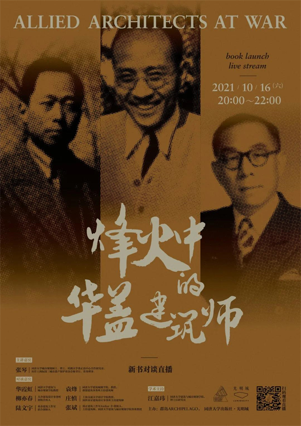 《烽火中的华盖建筑师》是张琴继《长夜的独行者》之后的第二本纪实性著作,以华盖建筑师事务所(1932-1952)的建筑项目为切入点,全面呈现了尤其是抗战全面爆发期间的三位合伙人——赵深、陈植、童寯及项目所及历史背景、人和事。10月16日,张琴将做客群岛直播间,以一个代表性事务所为引子切入大的时代,呈现抗战时期中国社会的方方面面。