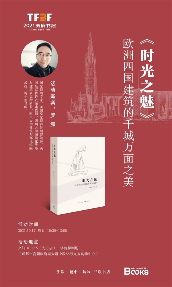 10月17日,我们邀请到四川大学建筑与环境学院教授、博士生导师罗隽带着他的著作《时光之魅》,空降文轩BOOKS九方店,与我们一起发现建筑之美,探讨在城市化进程的古建筑与城镇保护。