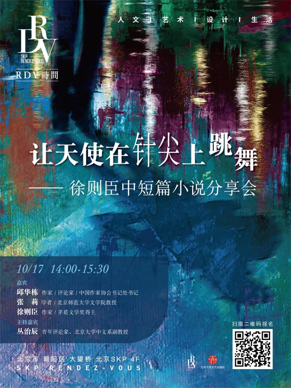 10月17日,著名作家邱华栋,著名评论家张莉、丛治辰及徐则臣将做客北京SKP,围绕《青城》《跑步穿过中关村》《如果大雪封门》三部作品,深入探讨徐则臣中短篇小说的写作成就与文学魅力。
