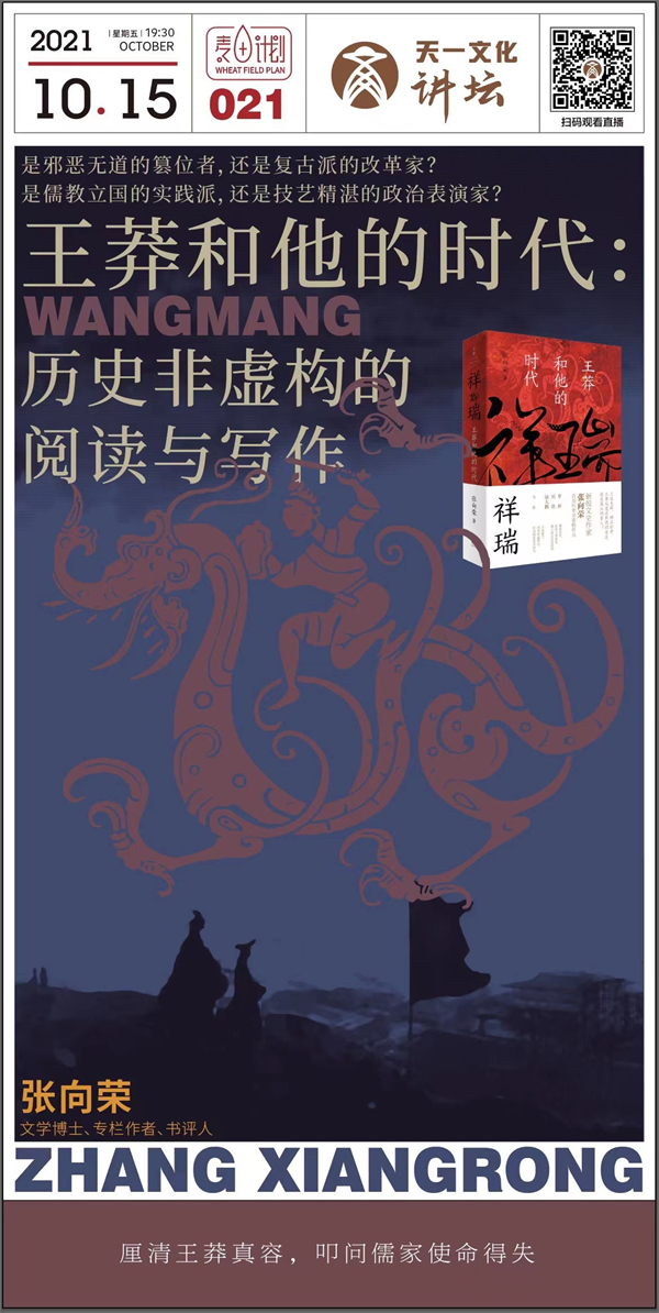 10月15日晚,文学博士、书评人张向荣(网名“大白”danyboy)将携自己的新书《祥瑞:王莽和他的时代》与读者做线上分享。《祥瑞:王莽和他的时代》截取汉宣帝到新莽这一历史片段,从“祥瑞”这个视角切入,剖析王莽的个人、家族和政权相关的人物事件,再现了太后王政君、外戚王氏家族、刘姓皇室家族、儒家经师、官僚士大夫等在西汉末年政治舞台的角力,进而重新审视漩涡中心的王莽,以窥他和时代的真貌。