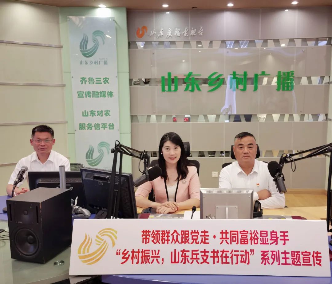 左海军(右一)在山东乡村广播电台介绍致富经验(张爱华供图)