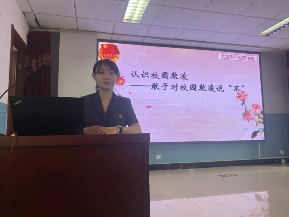 未成年人健康成长,关乎家庭幸福、社会和谐、祖国未来和民族希望,为了构建“平安校园”,推动校园法治建设,在“六一”儿童节来临之际,平谷法院民一庭开展“法护儿童成长 我们携手‘童’行”送法进校园活动,为祖国的花朵们送上一份特别的礼物。5月17日下午,平谷法院民一庭法官助理贾曾翔走进北杨桥中心小学,以“对校园欺凌说不”为主题,为全校师生上了一堂精彩生动的法治课。