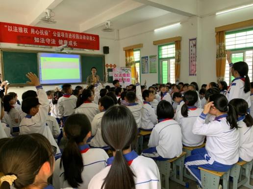 通过生动有趣的讲课方式,将与未成年人息息相关的《未成年人保护法》、《预防未成年人犯罪法》等法律法规向礼阳李小学的学生们进行讲解,并与学生们开展互动游戏,让学生们在互动中学习法律知识,在学生们心中播散法律种子。