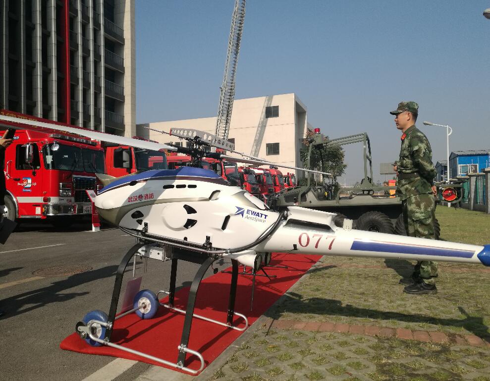在启动仪式消防车辆装备器材展示区,72米登高平台车、55米直臂云梯车、重型大功率泡沫车、路轨两用消防车、双头隧道消防车、多种类型的生命探测仪、防爆消防灭火侦查机器人、消防无人直升机等高精尖消防装备器材精彩亮相,为消防灭火救援提供了强有力的设备支撑。