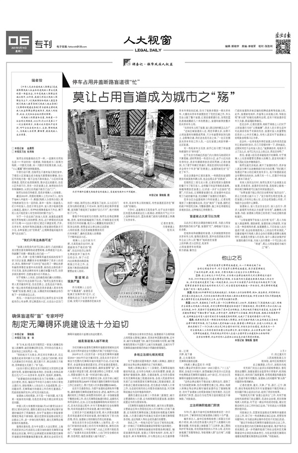 持续关注就业、医疗、教育、养老等民生领域话题,关注老年人、残疾人、妇女儿童权益保护,用心用情用力帮助人民群众解决困难事、烦心事。开设“调查记·保障残疾人权益”专栏,调查残疾人生活现状,呼吁依法保障残疾人权益;刊发《开学季,课后服务如何成为最优解》《未成年人网游这条生意链怎么断》等数十篇稿件,助力“双减”政策落地;《法治日报·社区版》专门设立“青少年与法”专版,搭建法治工作者、教师、学生与社会的沟通交流平台。