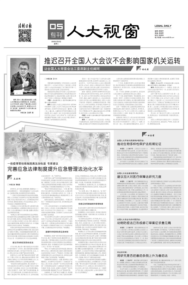 《法治日报》2020年2月25日人大视窗专刊推出的报道《推迟召开全国人大会议不会影响国家机关运转》,荣获第三十一届中国新闻奖二等奖