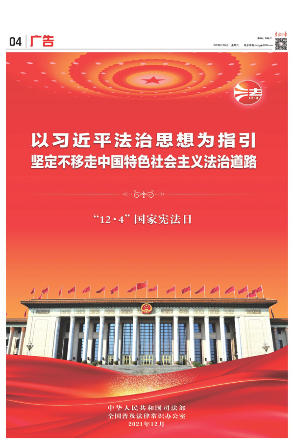 2021年12月4日,《法治日报》4版整版刊发宪法宣传公益广告