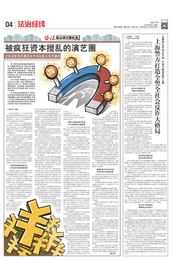 策划推出“依法整治演艺圈乱象”专题,连续刊发6篇调查报道,持续加强抵制泛娱乐化、流量至上等不良倾向舆论引导,指出依法治理路径。