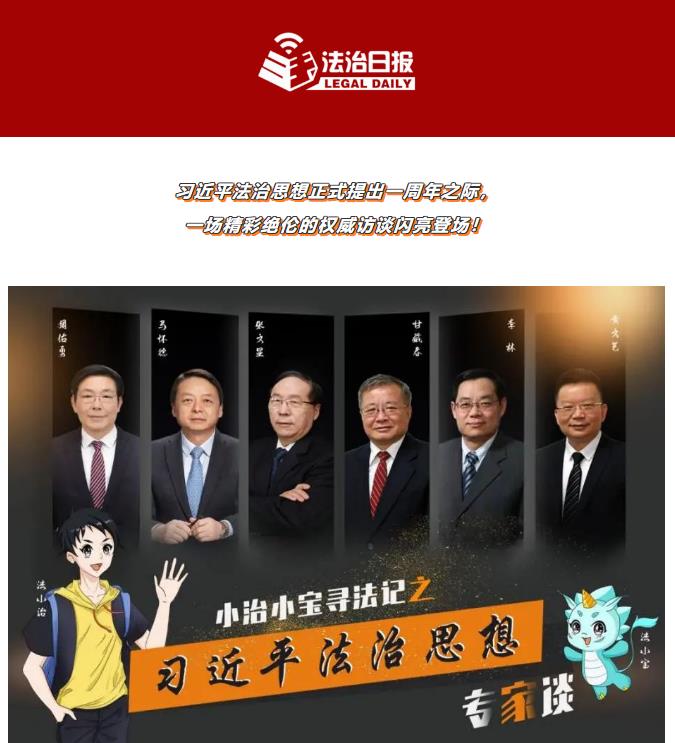 2021年11月16日至27日,法治日报微信公众号重磅推出小治小宝寻法记之“习近平法治思想专家谈”系列微视频(点击图片查看)