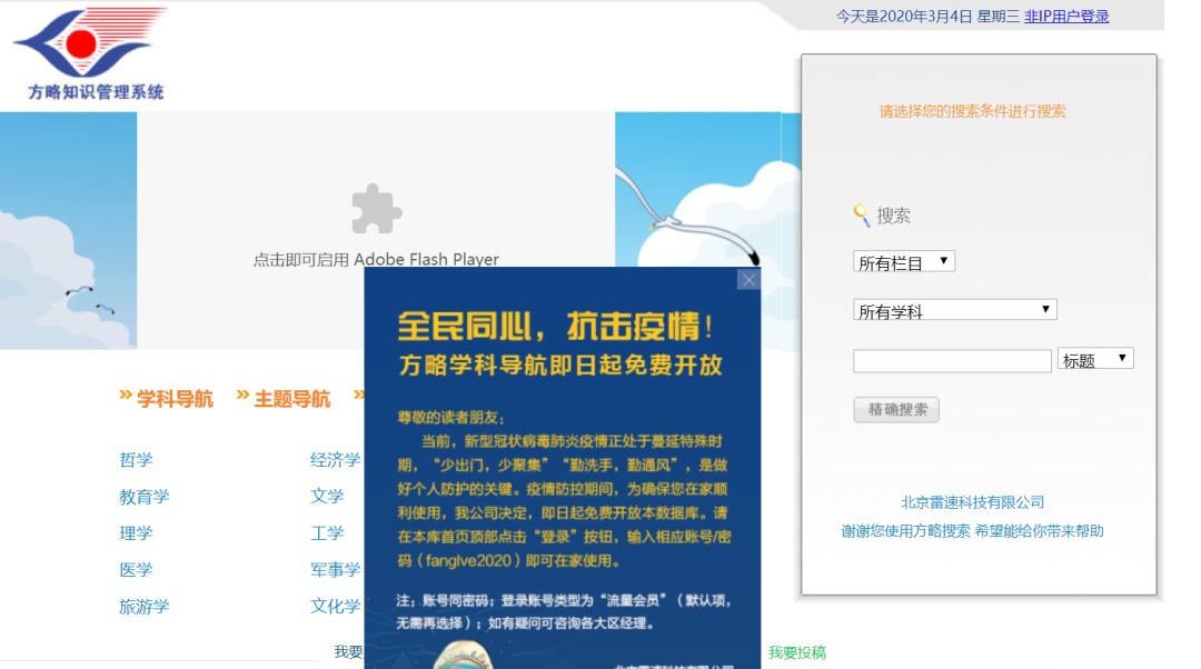 方略知识管理系统(,以下简称方略)面向学术、科研、教学、考试、管理等各个学科提供集数据库服务、深度研究、专业咨询于一体的百科知识门户网站,