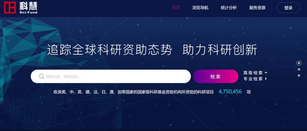 免费内容:收录世界上二十多个科技发达国家和地区的1000多万个受资助科研项目数据及3000多万条科研成果(产出)链接指向。