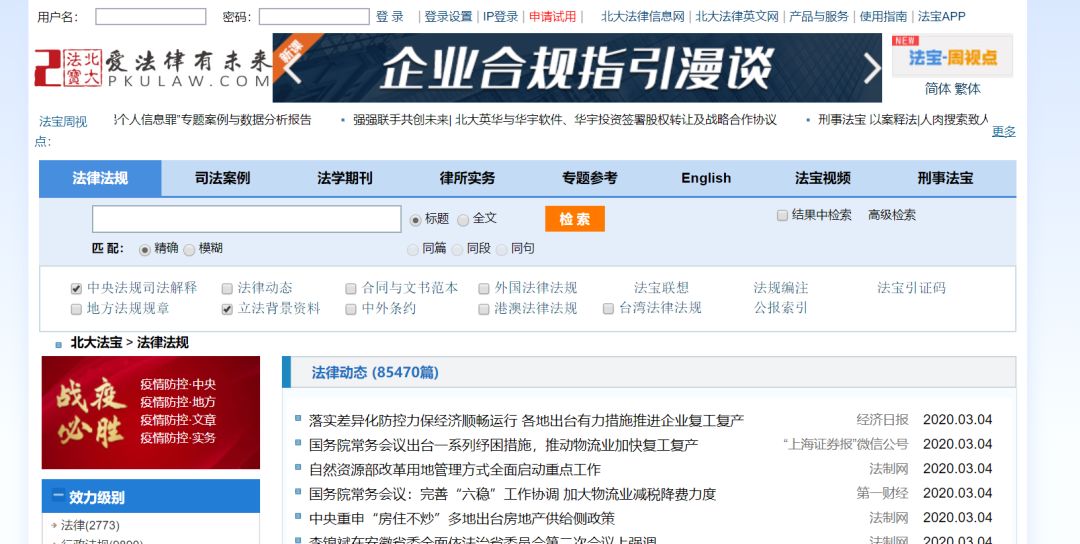 提供中文法律法规、法院案例、合同文本等法律信息资源的免费检索和下载。