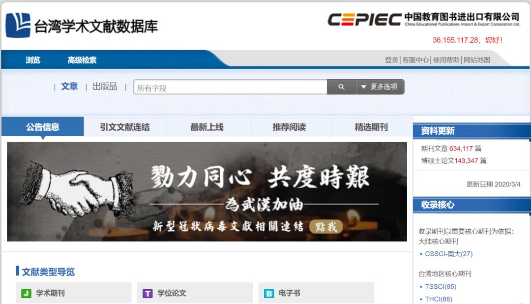 包含台湾人文科学、基础与应用科学、医药卫生学、生物农学、工程学以及社会科学相关期刊论文及学位论文74万余篇。