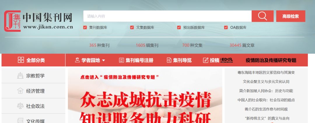 收录集刊350多种,其中CSSCI来源集刊34种,中国社会科学院各所、研究室、学者主编的集刊约60种。