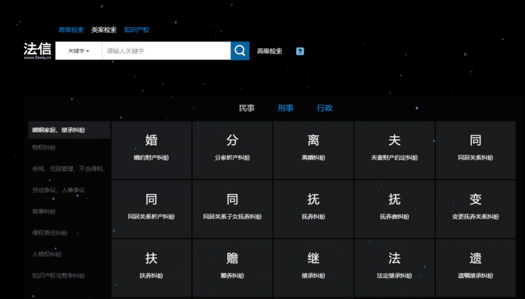 法信“类案检索”民事刑事行政的都包含,案由的各种大数据分析维度做的很专业,目测有至少300个案由罪名都有专有的分析维度。