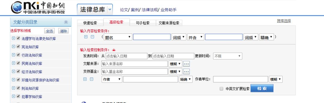 (2)知网也提供法律、案例的检索,但是和法宝、法信这类专业数据库相比,在资源规模、分类容量和检索功能方面还有不小差距。