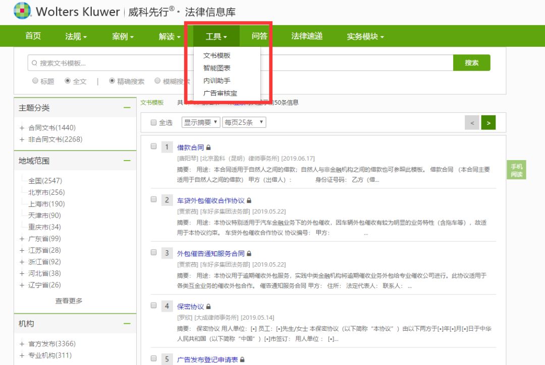 (1)律商网和威科先行有近似之处,有外商背景,服务群体比较偏向专业领域的律所律师,在劳动法、公司法、合规、并购、财税方面推出了很多实践指引工具。