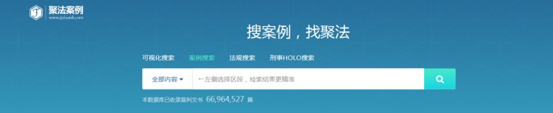 (1)聚法案例专门做案例分析,可视化搜索评价很不错,搜索以后直接提供可视化分析。