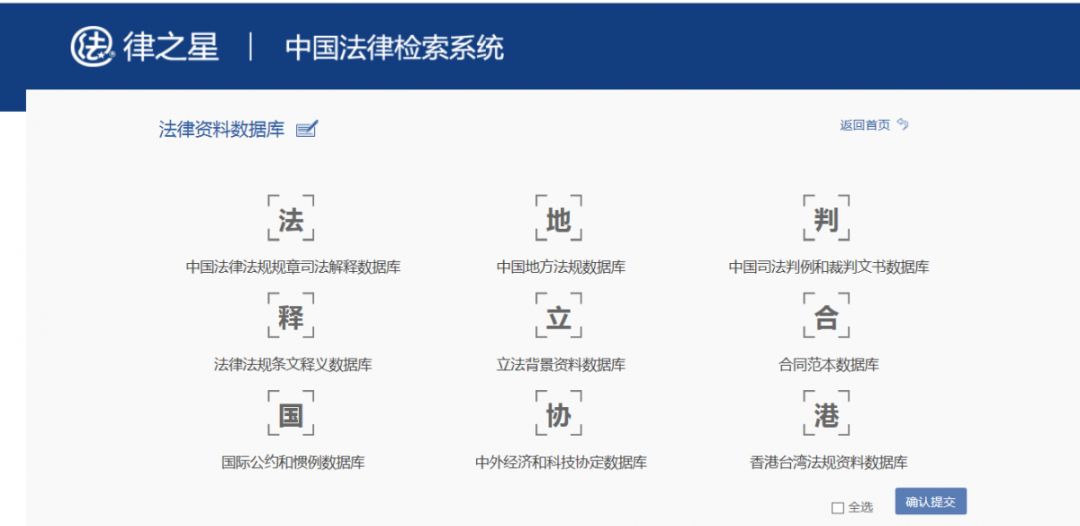 这里将常用的综合型的法律检索工具包含的内容版块罗列成表以供大家参考——