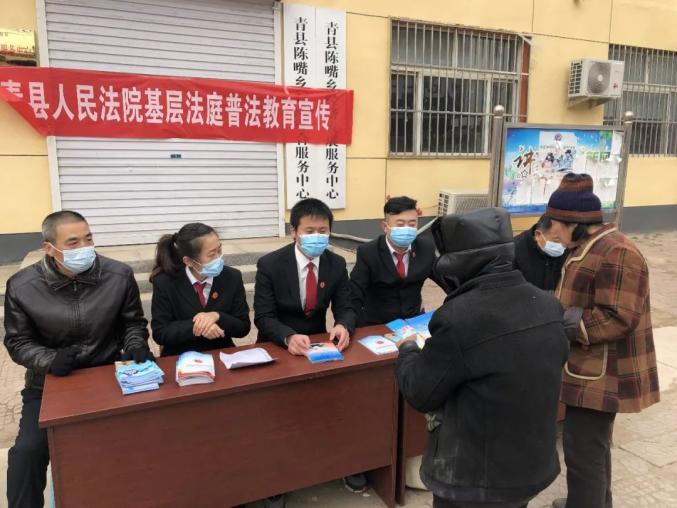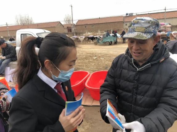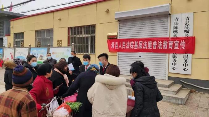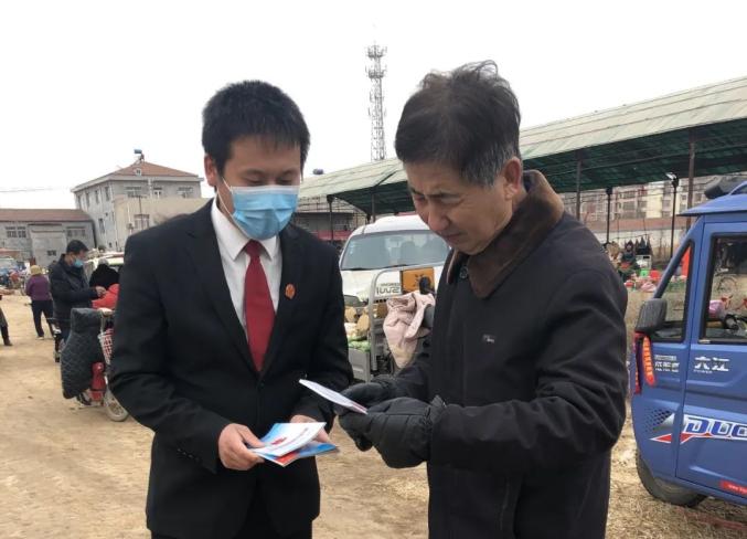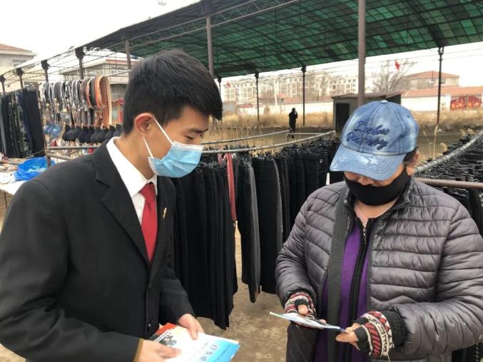 2021年3月7日上午,陈嘴法庭负责人李维斌、上伍法庭负责人曾宪杨及法庭工作人员深入青县陈嘴乡开展集市法制宣传和法律咨询。