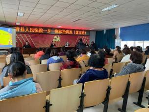 2021年3月5日上午,盘古人民法庭负责人杨海娜、流河人民法庭负责人姚曼君及法庭工作人员深入青县盘古镇人民政府,为乡镇妇女干部及辖区行政村妇女主任送上“法律大餐”。