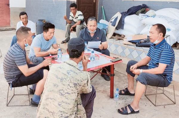 图为2021年8月3日,鲍卫忠(右二)在云南省沧源佤族自治县勐省镇处理案件。 最高人民法院新闻局供图