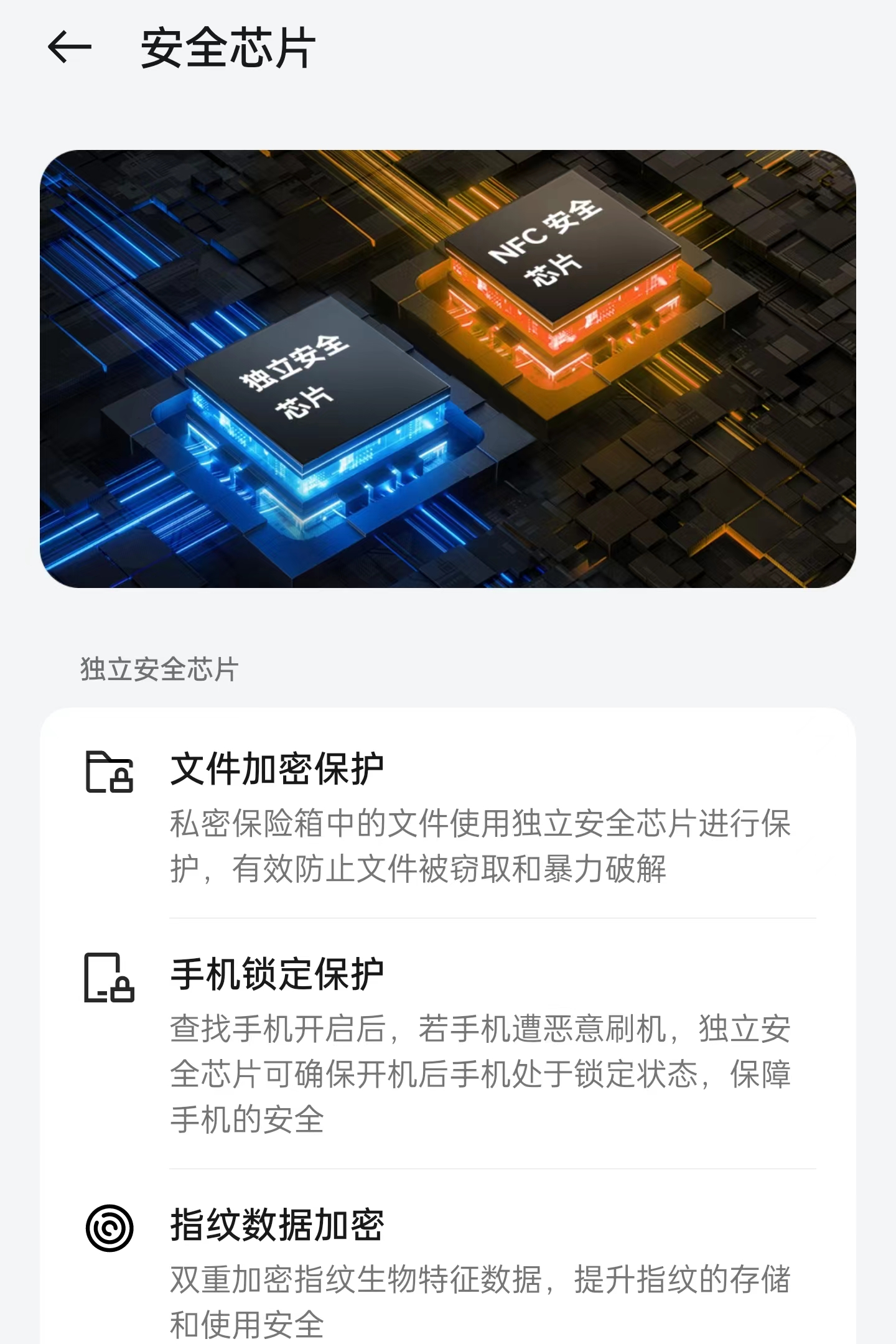 那么提到出行,想必安全问题也是大家非常关注的,Find X7 Ultra搭载了国密认证安全芯片, 隐私安全性方面也大幅提升。新增支持人脸锁、隐私密码锁、密码本锁、应用锁等功能,即使受到硬件级别的恶意攻击,也能保护用户机密信息不被恶意窃取。