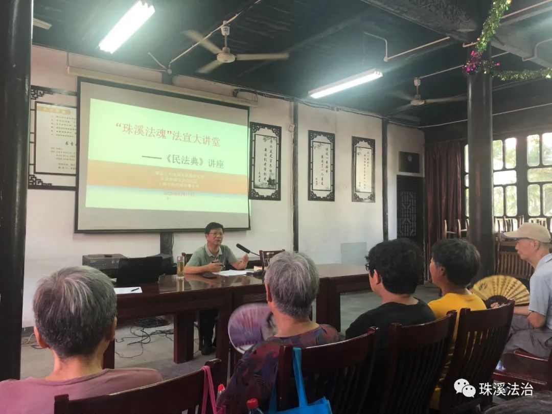 8月17日上午,联合律师走进朱家角镇东井街居委会,展开“珠溪法魂”法宣大讲堂之《民法典》讲座活动。本次活动共有30多位社区居民参与,期间上海市珠玑律师事务所肖锦龙律师使用当地方言,对《民法典》中继承篇的相关法律知识,围绕老年人最关心的财产、继承和法律援助等热点话题,以结合案例这样一种亲民且又简单易懂的方式,生动形象地向在场的居民们展开讲授,受到了在场居民的一致点赞。