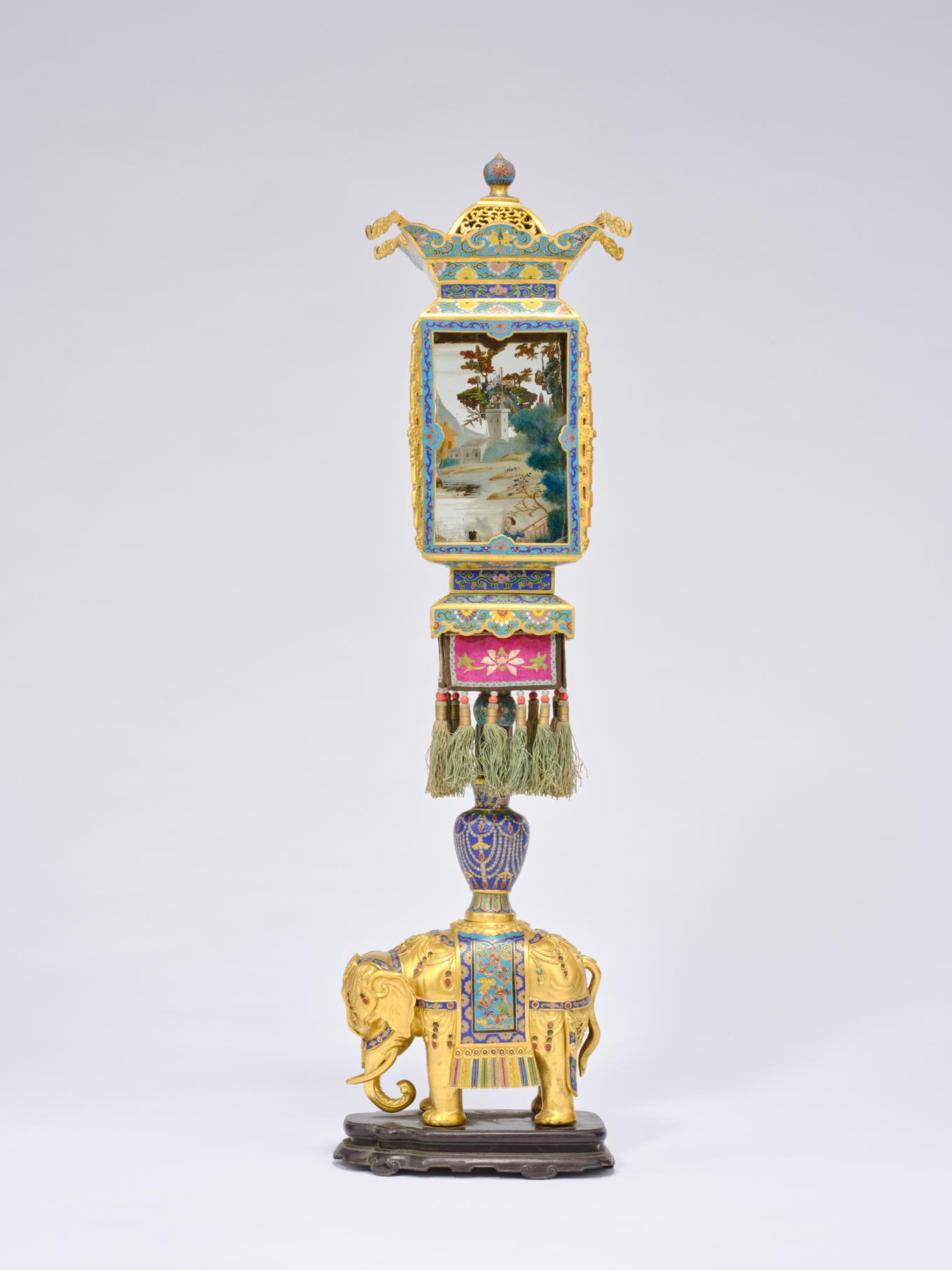 大象性情温和,知恩图报,在古代为君主贤明、天下太平的象征。东汉班固的《白虎通》载:“象者,象太平而作,示已太平也。”唐人徐坚的《初学记》载:“瑶光之精,散为象变。”象为瑶光的精华,因而有祥瑞之意。《宋书》载:“白象者,人君自养有节则至”,即当君主圣明时,就有白象出现。明清时期的故宫,象的造型多见于乐器、钟表、香薰、宝玺、如意以及灯具等器物上,且多与宝瓶相组合。由于“象”谐音“祥”,“瓶”谐音“平”,因而古人用象驮宝瓶的造型来寓意天下太平,并称之为“太平有象”。