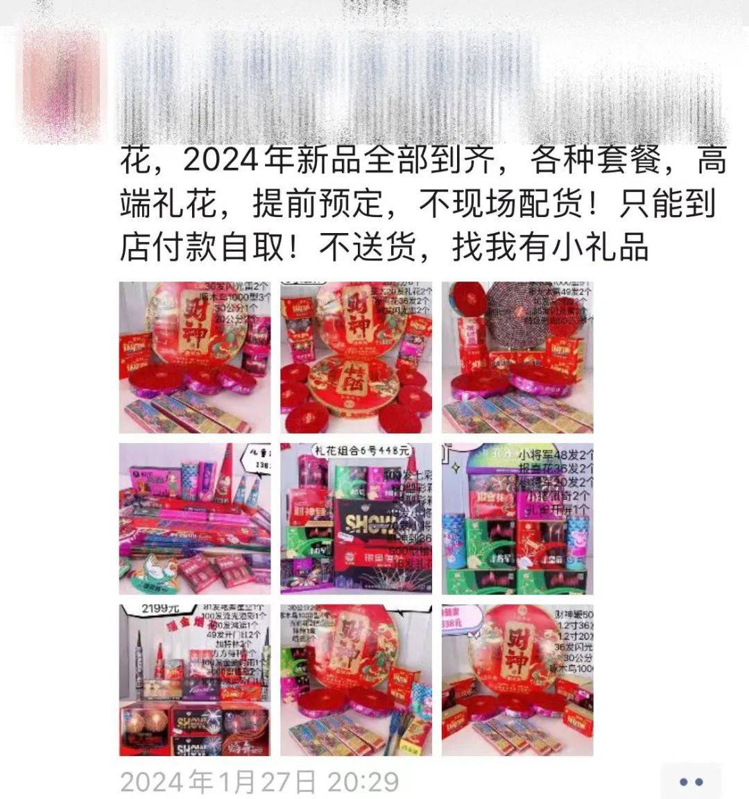 朋友圈贩卖烟花爆竹