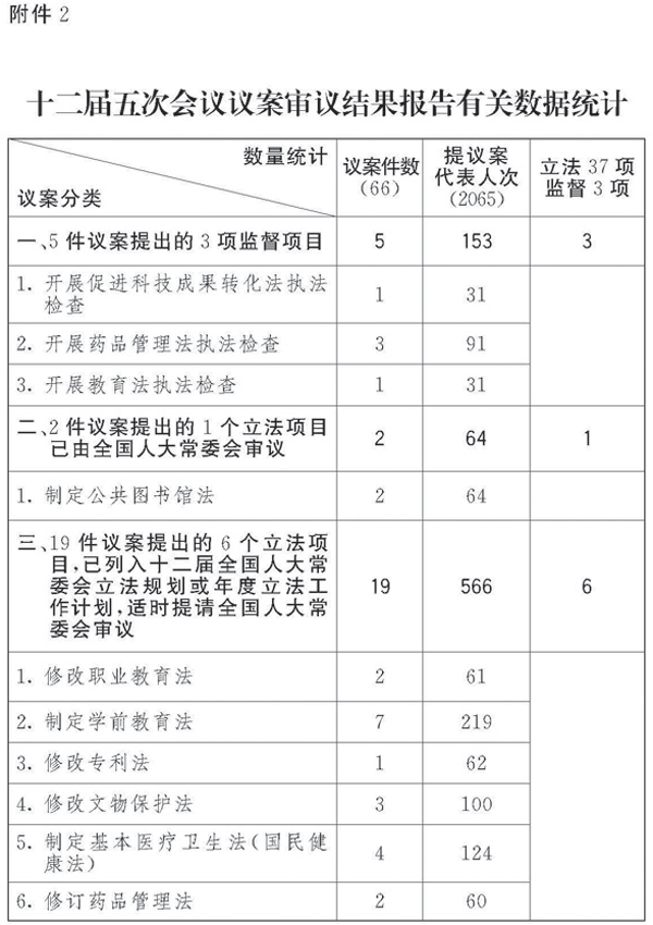 2.十二届五次会议议案审议结果报告有关数据统计