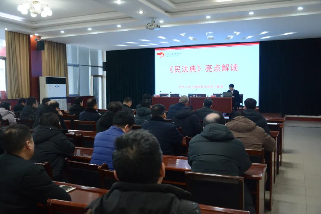在随后的赠书仪式上,孙艳院长向古汉山矿职工代表赠送了法律书籍,赠书仪式结束后,修武法院党组成员、副院长千磐以《民法典》亮点解读为主题,为矿上职工开展了法律讲座,他通过以案释法,深入浅出的对《民法典》相关内容进行了分析解读,并告知大家如何在法律层面处理遇到的问题,以及如何积极主动的利用法律手段维护自己的权益。
