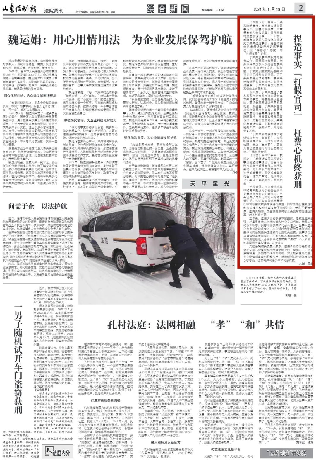 《山东法制报》:捏造事实“打假官司” 枉费心机终获刑 轻触阅读原文