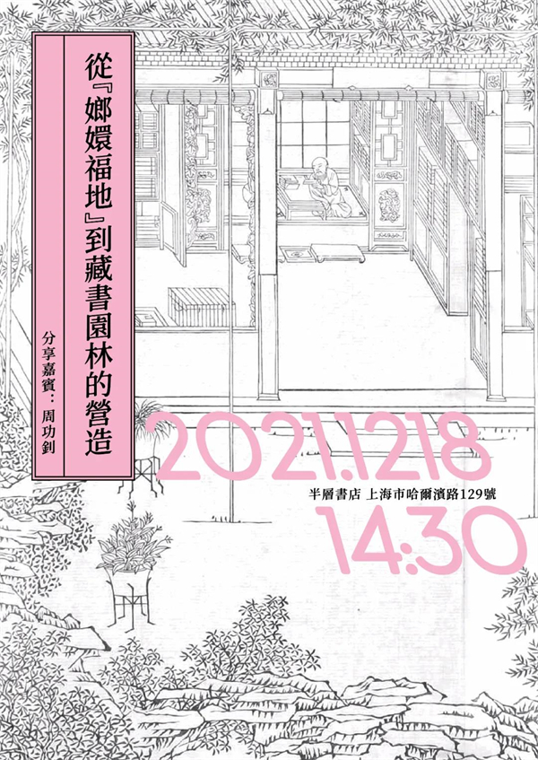 晚明文人张岱笔下的这处“嫏嬛福地”是他生前为自己死后入土所设计的园林。这里的空间经营并非单纯地布置花木虫鱼、亭台楼榭,更是寄托了“藏书”这个跟随了他一生的意趣。本次讲座将简要地展现这种传统文人的藏书文化与园林营造的观念,如何在当下获得传承与转译,成为空间实践的创造性条件。