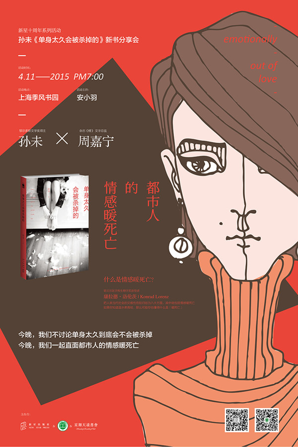 诺贝尔医学和生物学奖获得者康拉德·洛伦茨把人类当代社会的灾难性危险归结为八大方面,其中就包括情感暖死亡。人际关系看上去热热闹闹,可有了心事却找不到倾诉对象;并不真正了解谁,哪怕是至爱亲朋……日渐便捷的通讯方式让交流越来越“困难”。讲座从孙未的新书出发,直面都市人的情感暖死亡。