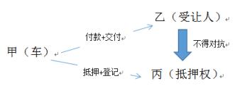 ②甲将其名下的汽车卖给乙并且完成了交付,但迟迟未办理过户登记,乙付款。后甲欠丙2万元,故将该车抵押给了不知情的丙并且办理完抵押登记。此时丙就是乙不可对抗的善意第三人,丙依法取得抵押权。
