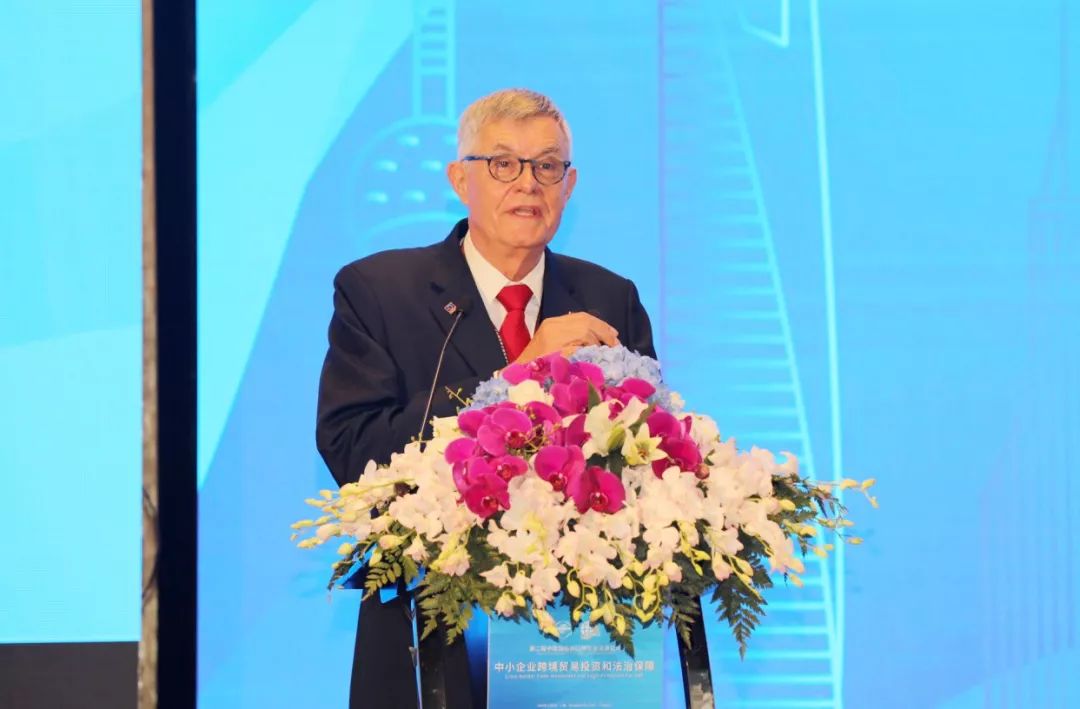 中国国际贸易促进委员会副会长陈建安在致辞中表示,中国政府决定持续举办进博会是推动新一轮高水平对外开放、推动世界经济增长的重大举措。中国贸促会致力于为广大中外工商界提供便利的商事法律服务,充分利用全球工商界、商事法律服务界汇集中国国际进口博览会的契机,机制性主办配套法律论坛,搭建中外商事法律服务合作机制与平台,拓展商事法律服务职能与深度,为中国国际进口博览会、为全球工商界融入中国市场保驾护航。陈建安副会长强调,中小企业是推动世界经济和社会发展的重要力量,今年的论坛聚焦于“中小企业跨境贸易投资和法治保障”主题,宗旨就是为各国工商界开展跨境贸易投资合作搭建高质量商事法律服务平台,助力拓宽合作领域,推动各国中小企业成长壮大。陈建安副会长提出了四点建议:一是深化商事法律服务合作层次;二是强化知识产权保护国际合作;三是提升商事争端预防与解决合作质量;四是助力中小企业加强风险防范能力建设。