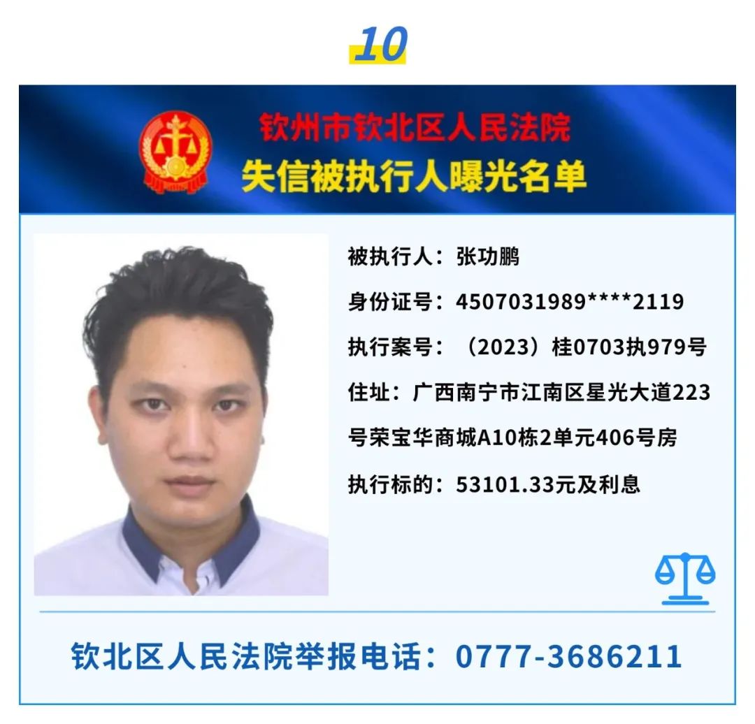 限以上被执行人自本通告发出之日起10日内自行或委托他人到钦州市钦北区人民法院执行局如实申报财产并履行生效法律文书所确定的义务。