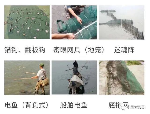 长江干流全面禁止使用单船拖网、双船拖网、多船拖网、多桩有翼单囊张网、双锚框架张网、拦河撑架敷网、岸敷箕状敷网、岸敷撑架敷网、拦截插网陷阱、拦截箔筌陷阱、导陷插网陷阱、导陷箔筌陷阱、拖曳齿耙耙剌、定置延绳滚钩耙刺等十四种渔具