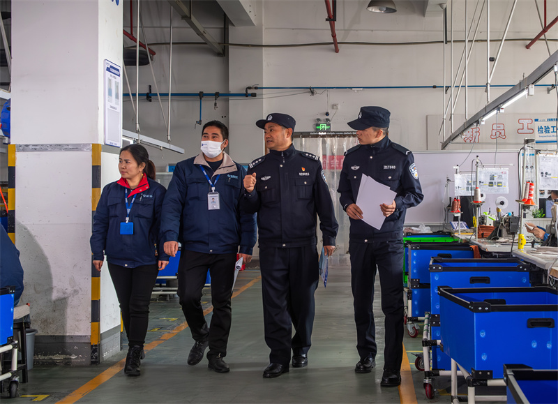 1月4日,浙江省宁波市公安局北仑分局大碶派出所民警深入企业精准服务,助力企业发展。方剑炯 摄