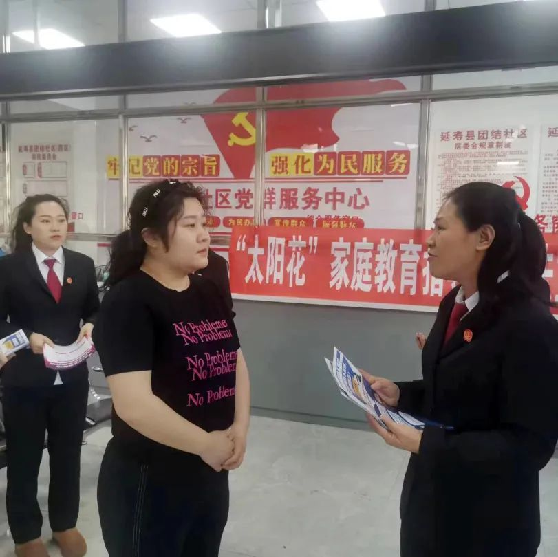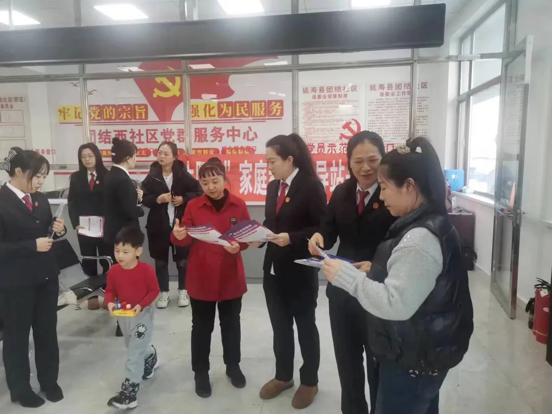 为了有效预防和制止家庭暴力,保护家庭成员的合法权益,维护平等、和睦、文明的家庭关系,1月31日,延寿县人民法院家事法庭携手延寿县团结社区开展以《反家庭暴力法》和《家庭教育促进法》为主题的普法宣传活动。