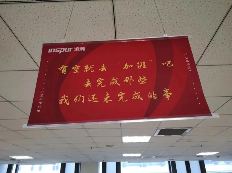据网传图片显示,山东浪潮集团办公室内多处挂上了花式加班语:“有空就去‘加班’吧,去完成那些我们还未完成的事!”“白天加白班,不瞌睡;晚上加晚班,睡不着。”“大家加,才是真的加,加班真好”“他加我也加,想跑也跑不了。”