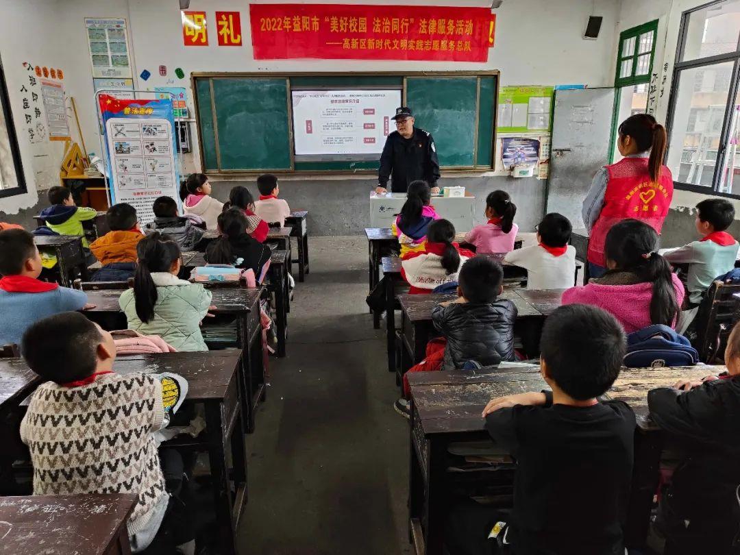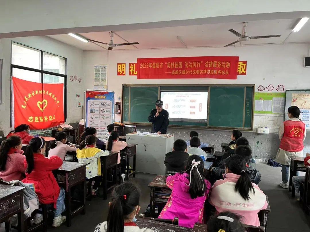 11月22日上午,益阳高新区新时代文明实践志愿服务总队、益阳市谢林港镇联合益阳市萤火虫社会工作服务中心在谢林港小学开展“美好校园 法治同行”法律服务活动。