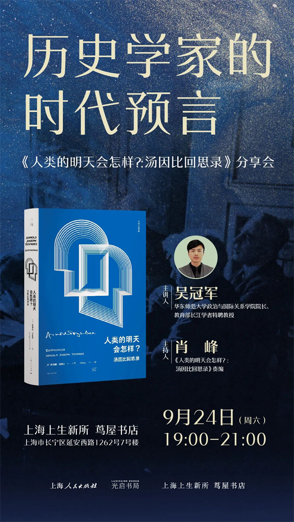 上海|历史学家的时代预言——《人类的明天会怎样?:汤因比回思录》分享会